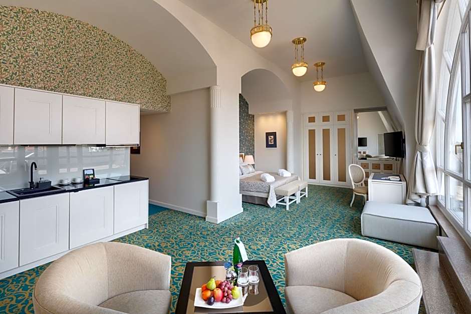 This Art Deco-style suite features a seating area, a bedroom, and a bathroom with a shower. For added comfort, the room includes a Nespresso coffee machine, a kettle, a mini-bar, and a flat-screen TV. Guests will also enjoy a spacious sofa, bathrobes, slippers, and upgraded bathroom amenities. A welcome surprise awaits upon arrival. The extended sofa makes this suite ideal for families traveling with a child, and a comfortable desk is provided for guests traveling on business.